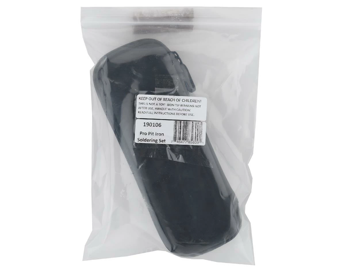 The 1UP Racing TS100 Pro Pit Soldering Iron brings forward the next generation in racer-oriented soldering irons! Small but mighty is the best way to describe this feature-packed tool. When connected to a 6 cell LiPo or a 24v power source, the Pro Pit Iron heats and is ready to use in under 10 seconds! An easy-to-read LCD display offers accurate adjustment of the 100-400°C (200-750°F) temperature range. 1up Boost mode offers a nearly instant temperature increase to 450°C (850°F) at the press of a button, making easy work of thick gauge wires! The Pro Pit Iron automatically cools to 200°C after 2 minutes of inactivity to prolong the life of the tip, and shuts down completely after 10 minutes of inactivity.
