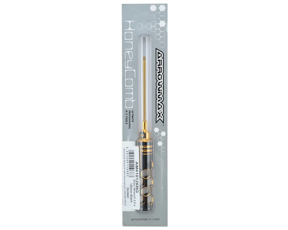 This is the Arrowmax Limited Edition Metric 2.5mm Allen Wrench. This tool features an eye-catching hollow honeycomb handle design with a rich black and gold color finish. Spring steel titanium nitride tips and a bottom cover provide a more comfortable, controllable and lighter feeling.