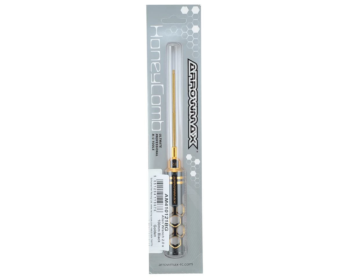 This is the Arrowmax Limited Edition Metric 2mm Allen Wrench. This tool features an eye-catching hollow honeycomb handle design with a rich black and gold color finish. Spring steel titanium nitride tips and a bottom cover provide a more comfortable, controllable and lighter feeling.