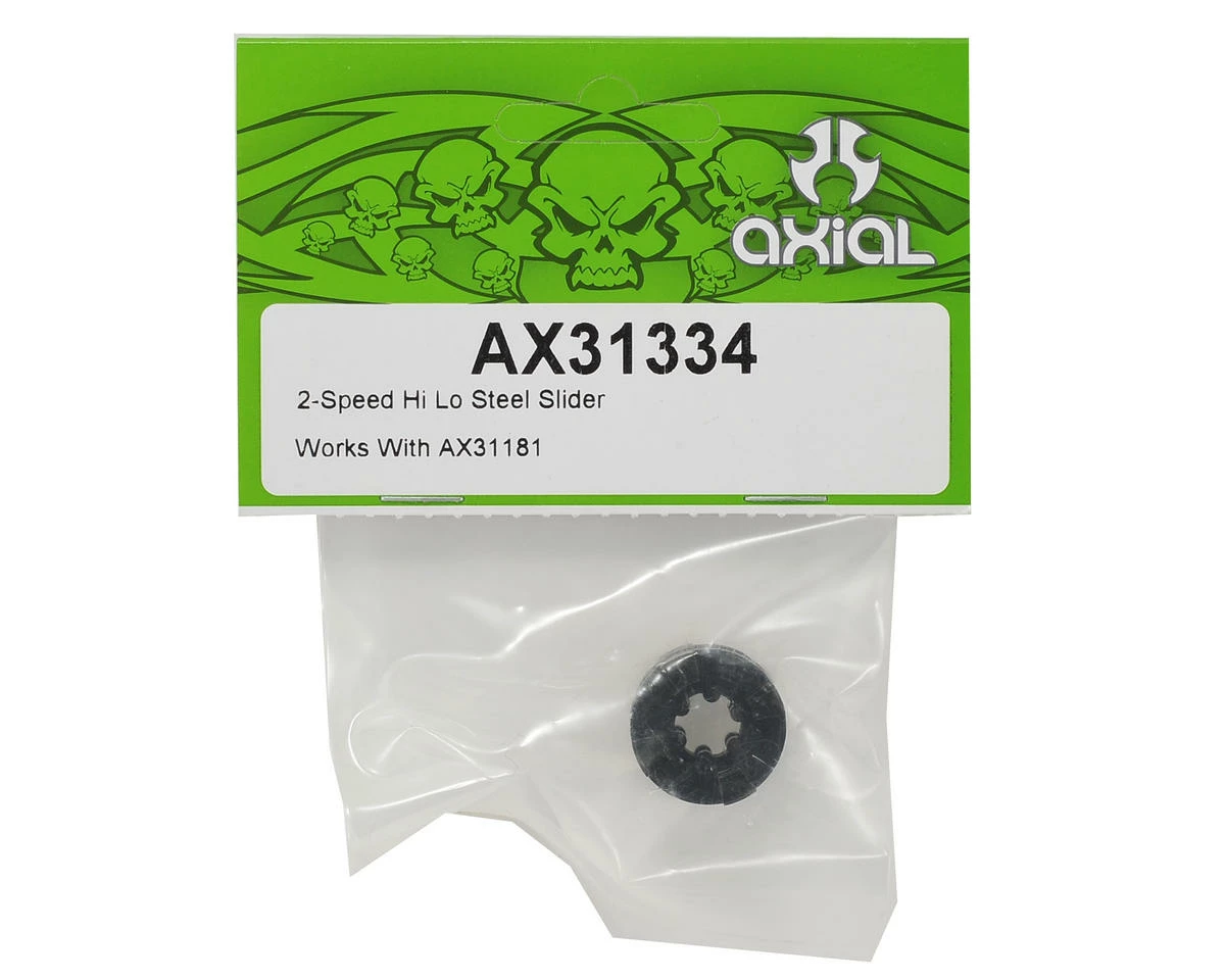 The Axial Racing 2-Speed Hi/Lo Steel Slider is heat treated, hardened steel and is compatible with Axial Yeti and RR10 rigs equipped with the optional 2-Speed Hi/Lo Transmission (AXI31181).