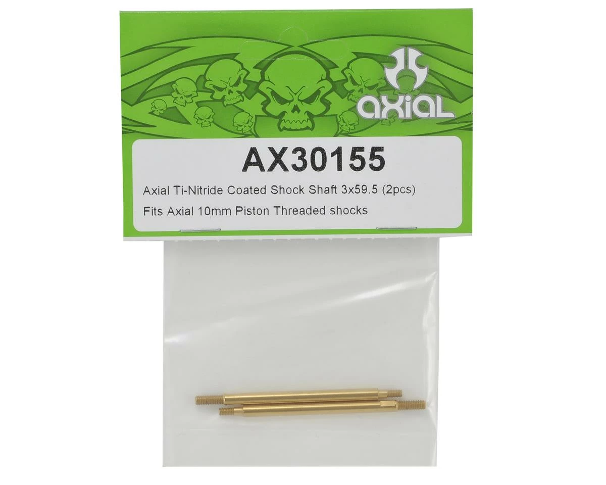 This is a replacement Axial 3×59.5mm Shock Shaft Set, and is intended for use with the Axial Scorpion, SCX10 and XR10 trucks using the Axial 72-103mm Aluminum Shock Set (AXI30092). These shock shafts are Ti-Nitride coated for smooth movement and long life.