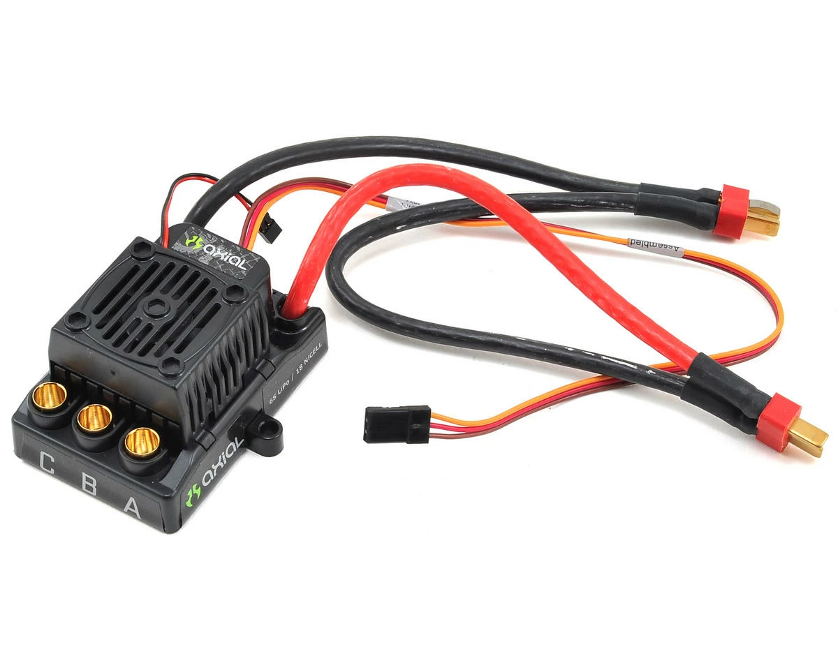 This is a replacement Axial AE-4 Vanguard Waterproof ESC. Developed by Castle Creations for Axial, the Vanguard ESC provides exceptional power, braking and adjustability. The ESC comes standard with Deans Ultra Plugs. The ESC can be programmed manually via Castle Field Programming Card or through the Castle Link software interface (optional).