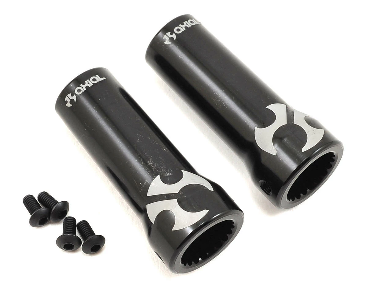 These black anodized machined aluminum AR60 axle extenders feature laser etched Axial logos and include mounting screws (AXIA0113). Use in conjunction with AR60 wide axle set (AXI31292) and replacement part to AXI31290.