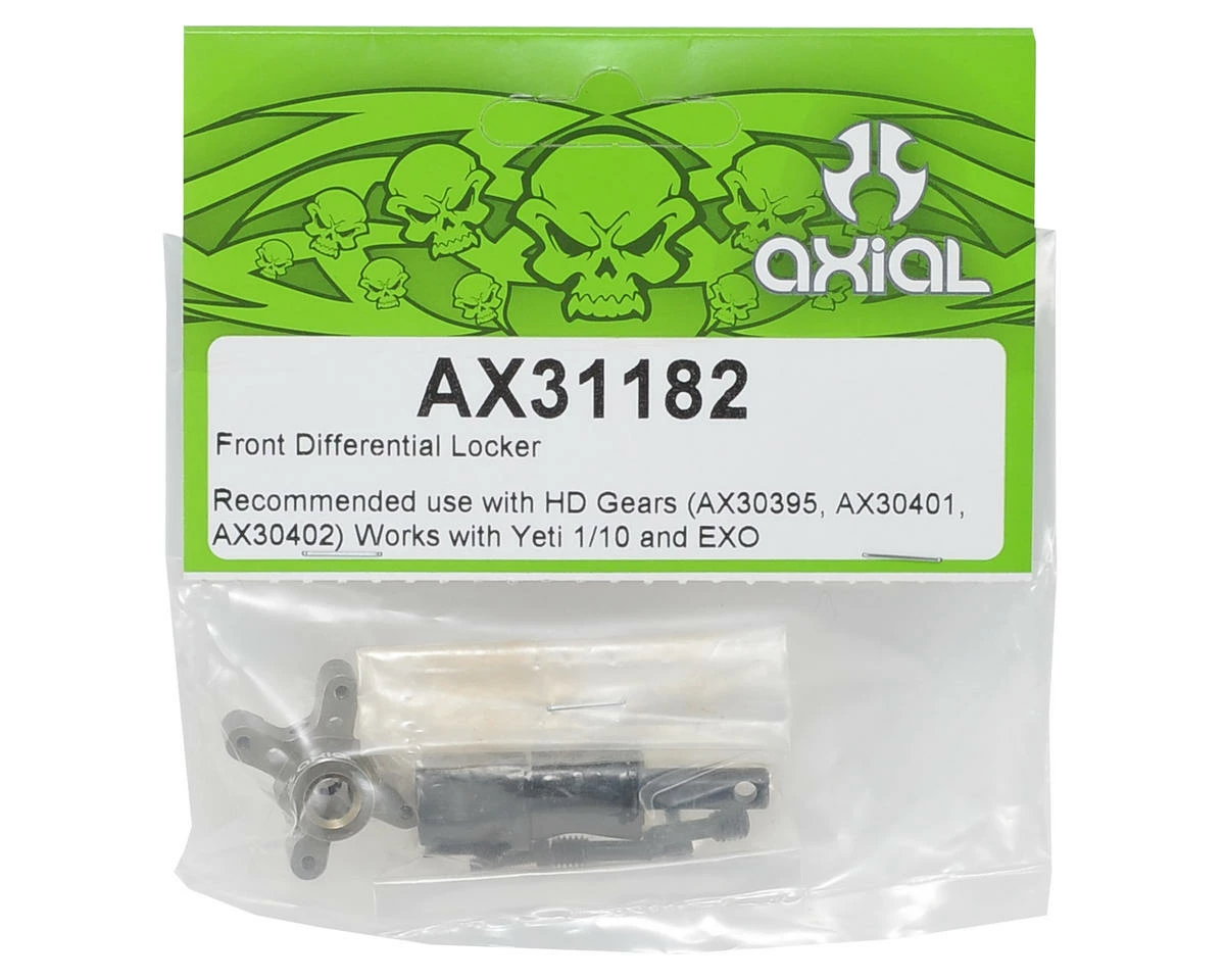 This is an optional Axial Front Differential Locker. This locker replaces the differential gears in the front differential to provide a locked-out, solid axle.