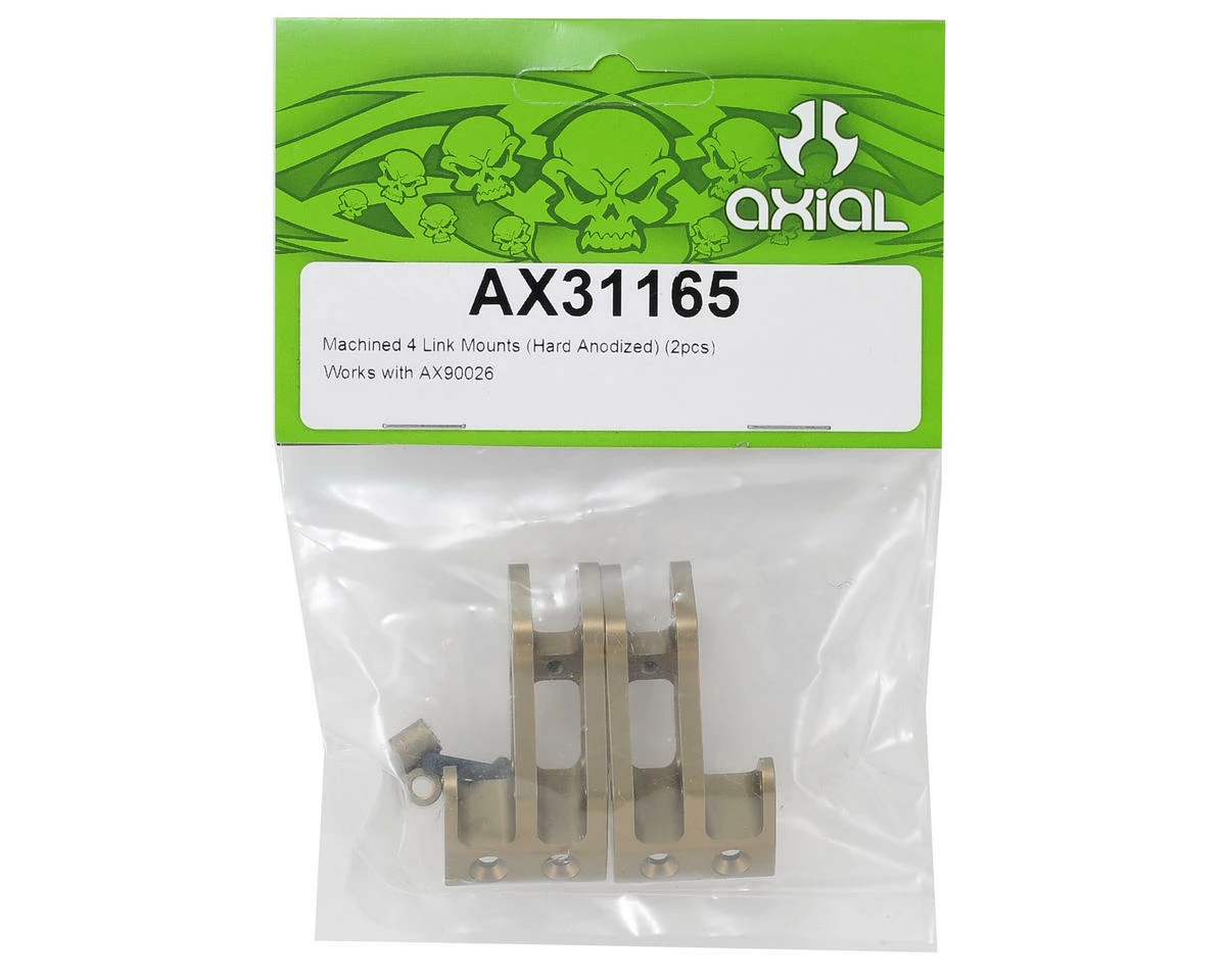 This is a pack of optional Axial Machined 4-Link Mounts. Axial’s CNC machined four link mounts for the Yeti are a direct fit upgrade for the stock plastic mounts. These durable, hard anodized aluminum mounts are a must have for high speed bashing and big jumps!