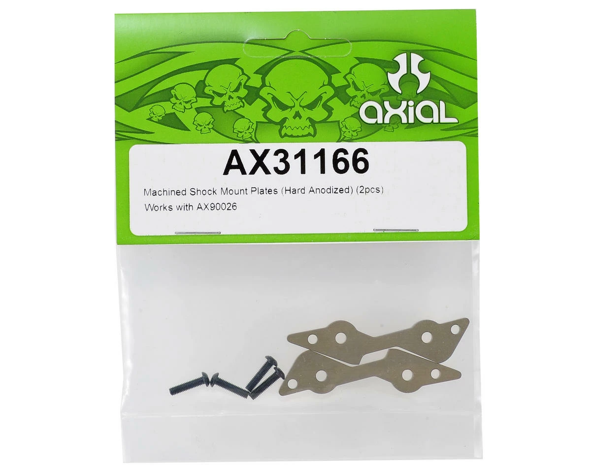 This is a pack of optional Axial Machined Shock Mount Plates. Axial shock mount plates increase the rigidity of the rear upper shock mount. These are a must have upgrade for high horsepower applications and big jumps.