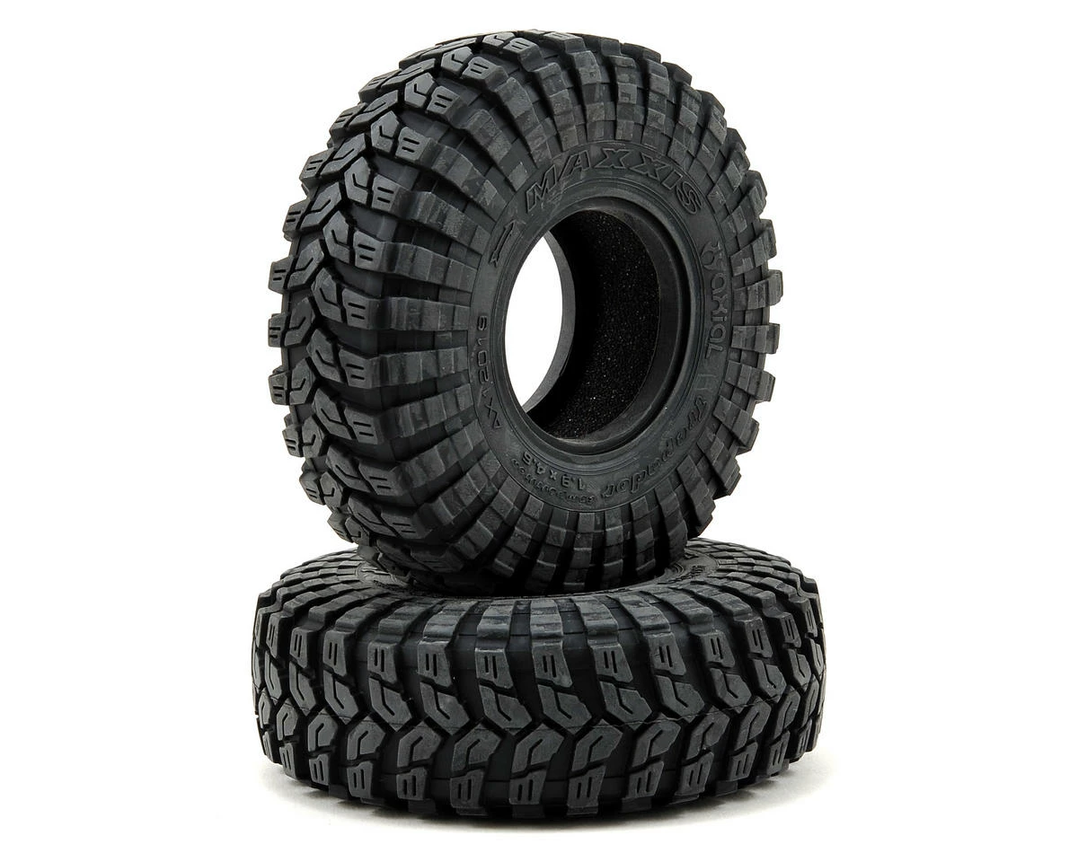 This is a set of two Axial 1.9″ Maxxis Trepador Tires. These fully licensed Maxxis Trepador tires are molded in the performance proven R35 compound for the best grip on any off-road surface and are now replicated in 1:10 scale, ready to mount on your 1.9 wheels. The aggressive tread pattern provides excellent traction on mud, rock, sand and everything in between, just like their 1:1 counterpart. These tires also feature a multi-stage staggered shoulder pattern providing improved control, even in the most difficult off-road terrain.