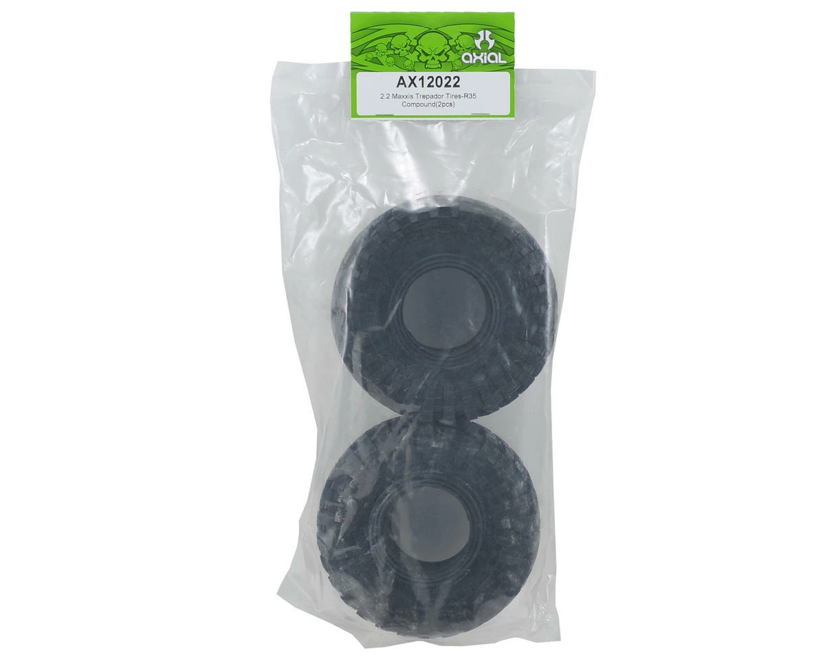 This is a set of two Axial 2.2″ Maxxis Trepador Tires. These fully licensed Maxxis Trepador tires are molded in the performance proven R35 compound for the best grip on any off-road surface and are now replicated in 1:10 scale, ready to mount on your 2.2 wheels. The aggressive tread pattern provides excellent traction on mud, rock, sand and everything in between, just like their 1:1 counterpart. These tires also feature a multi-stage staggered shoulder pattern providing improved control, even in the most difficult off-road terrain.