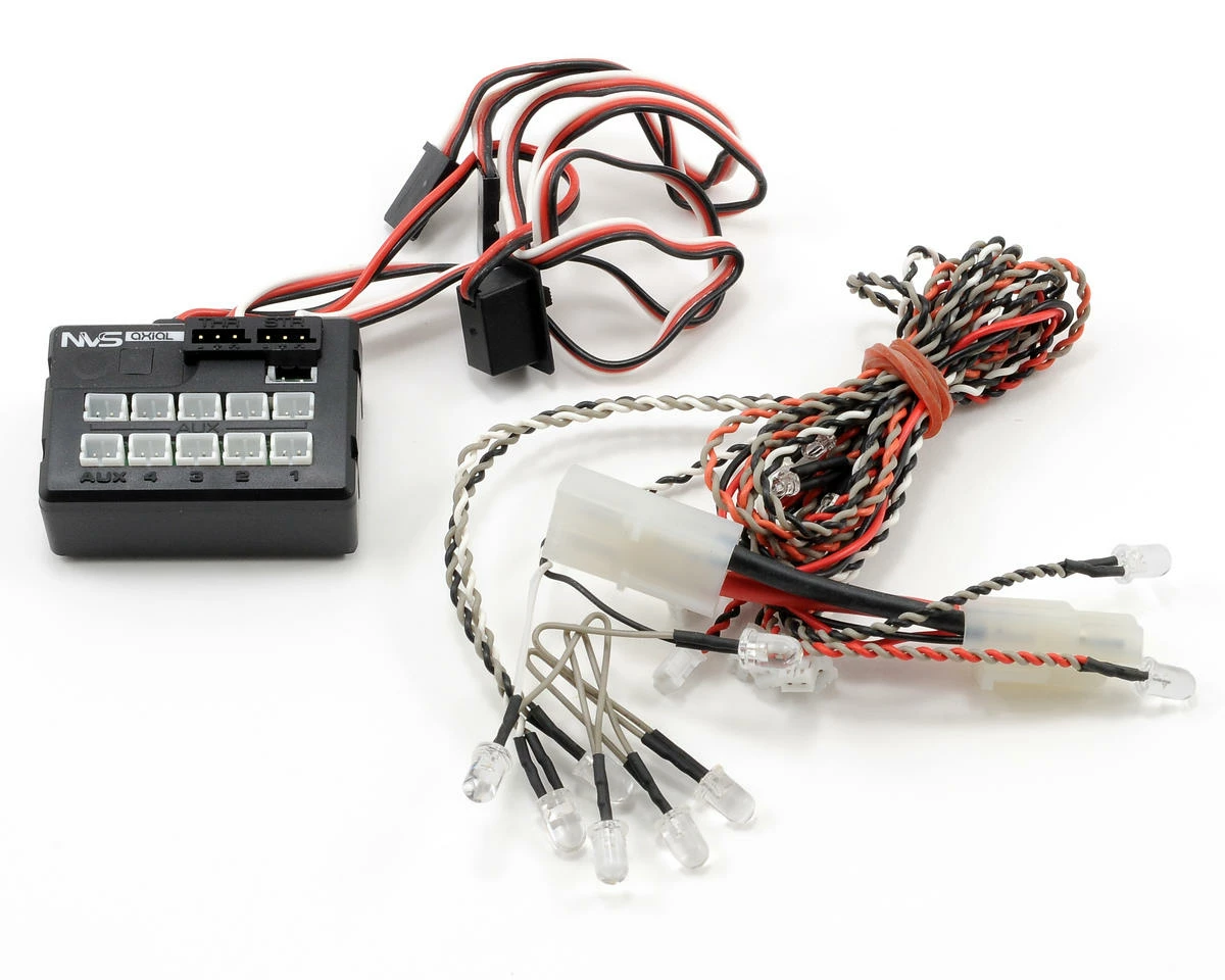 This is the Axial “NVS” Night Vision System. For the ultimate level in scale detail, you can now add the NVS light system to your rig! This system features controls for headlights, tail lights, brake lights, and right/left turn signals, as well as extra auxiliary lighting. This optional lighting kit is ideal for Rock Crawlers, Short Course Trucks, or any other application that could benefit from a multi-light system.