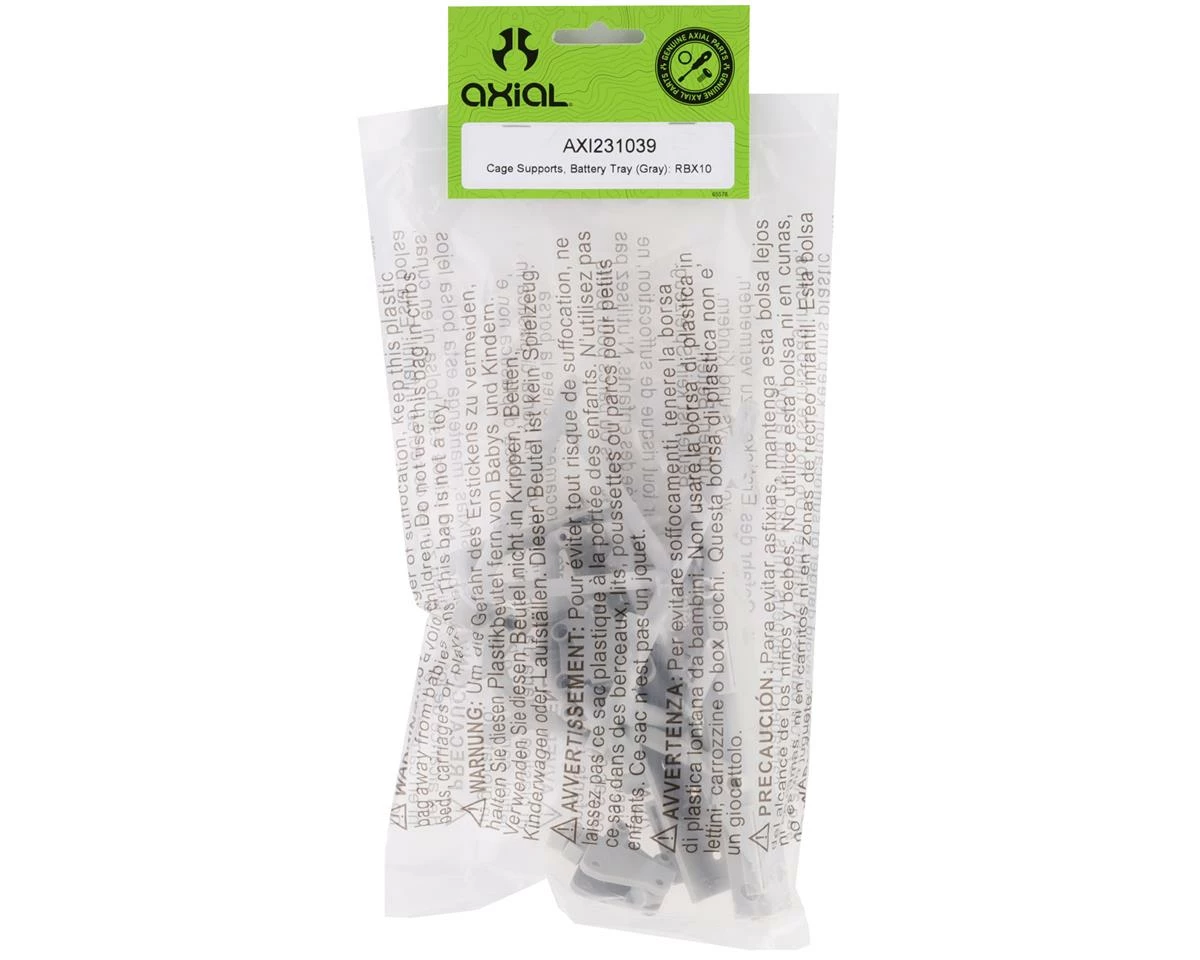Axial RBX10 Ryft Cage Supports & Battery Tray. Package includes optional cage support braces and battery tray components.