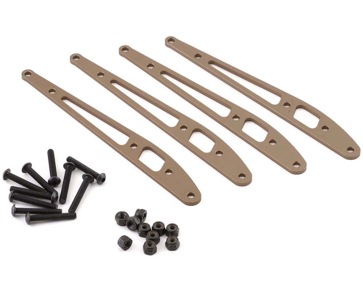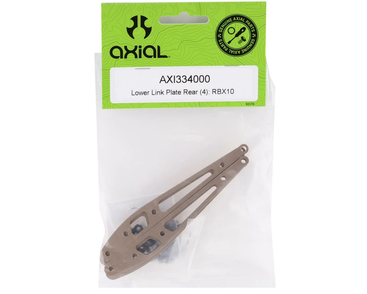 Axial RBX10 Ryft Rear Trailing Arm Plate. These optional trailing arm plates install over the stock rear trailing arms and help to stiffen up the stock plastic arms and add strength. Package includes four plates and hardware.