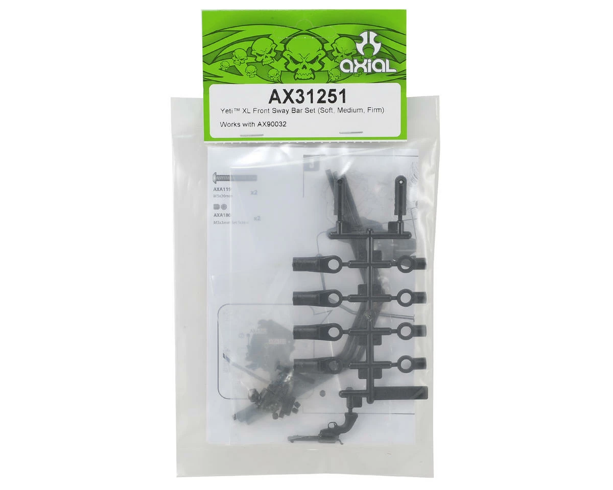 This is an optional Axial Yeti XL Front Sway Bar Set. A highly recommended upgrade for blasting around at high speeds, this sway bar kit will allow you to setup your suspension softer for jumps, while helping to reduce torque twist and body lean during acceleration. This creates more high speed stability and is a must have upgrade for your Yeti XL.
