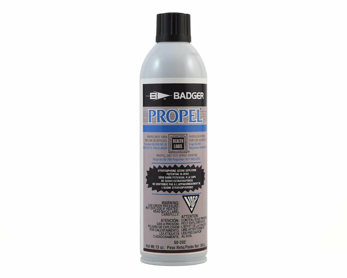 This is a 13oz can of Badger Propellant. Excellent starting air source or short usage alternative air source for use with all types and makes of airbrushes. Contains no CFC’s and does not promote ozone depletion.