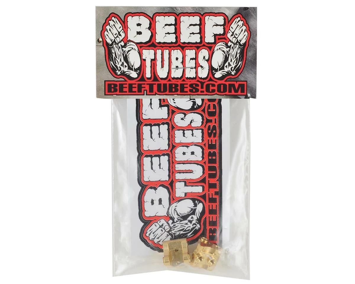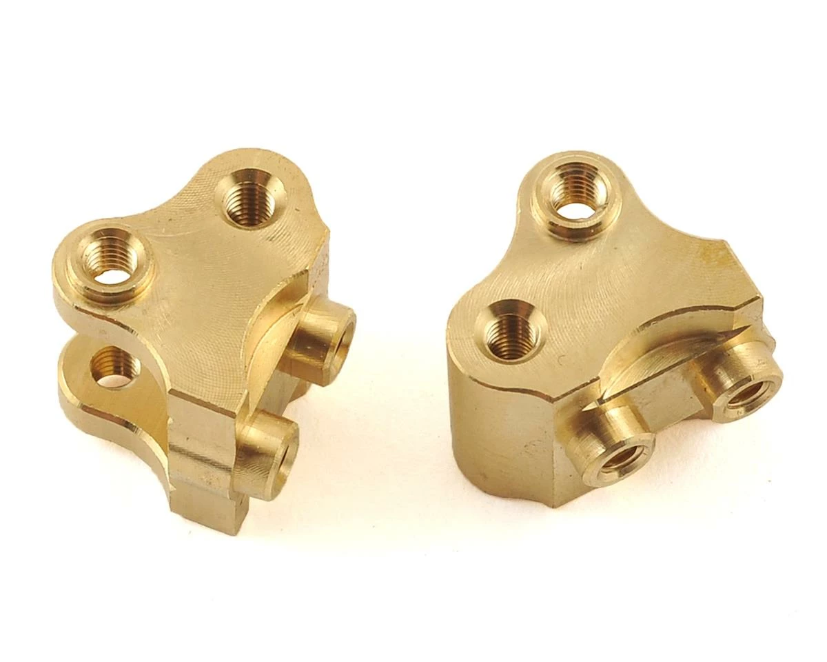 This is a pair of Beef Tubes SCX10 II AR44 Lower Link/Shock Mount, machined from solid brass. These mounts are a great option to add additional weight down low to assist with lowering the center of gravity on your rig.