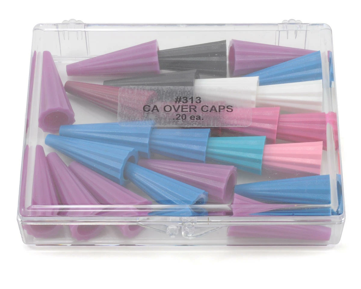 This is a box of twenty four Bob Smith Industries CA Bottle Caps in various colors. These work best with BSI products.