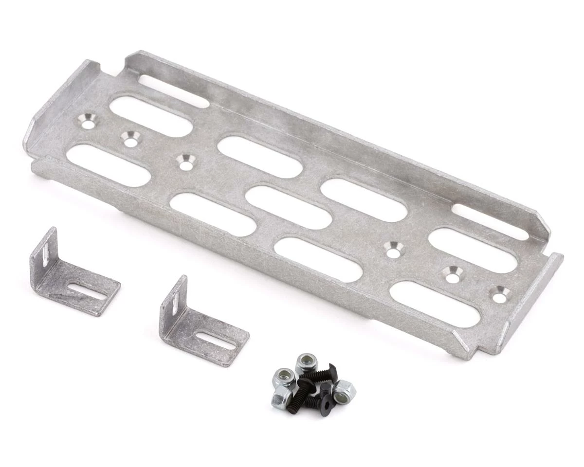 The BP Custom Aluminum SCX10 Battery Relocation Tray is a simple solution to add a forward battery tray setup to your rig. Made from lightweight aluminum material, this tray measures 140x46mm and will fit standard size 2S and 3S packs. The BPC battery tray holds the battery nice and low just behind the front axle and will help to increase traction, predictability, and overall performance on the rocks. Package includes one battery tray, two L-shaped mounting brackets and hardware. Made in the U.S.A.