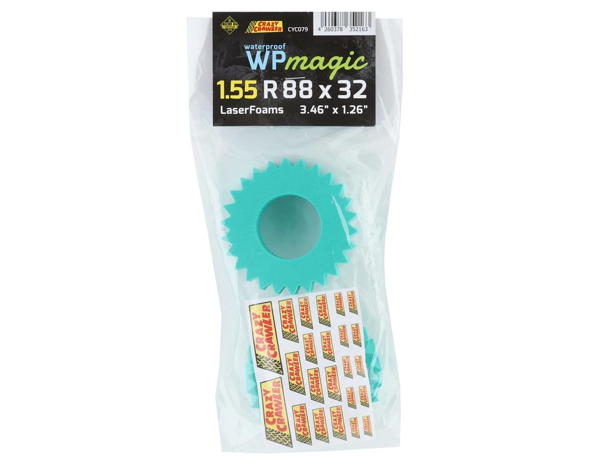 Crazy Crawler LaserFoam “WP Magic 88x32mm” 1.55 Foam Crawler Tire Inserts are precision cut, waterproof, closed cell foam tire inserts designed for performance. The unique closed cell material clings to the tire, and this direct connection helps to reduce internal movement of the insert, helping to increase stability. The material and cut shape ensure that the tire only rolls in the area of the tread that is in contact with the surface, creating great driving characteristics and an incredibly scale look.