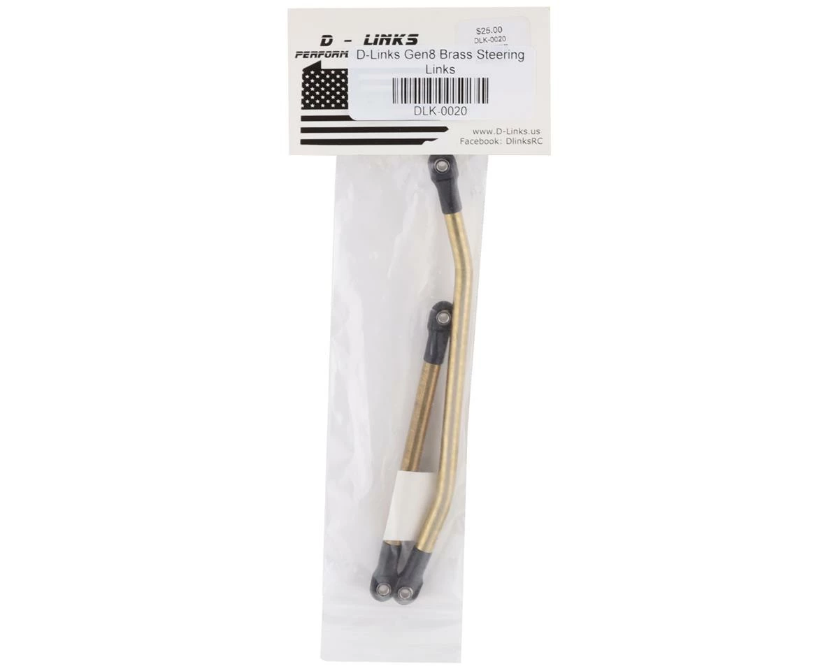 D-Links Gen8 Brass Steering Links are a great option when you want a little more forward weight bias on your truck. The links feature a high clearance bend to prevent contact with the diff cover, and the package includes a factory assembled drag link and steering tie rod.