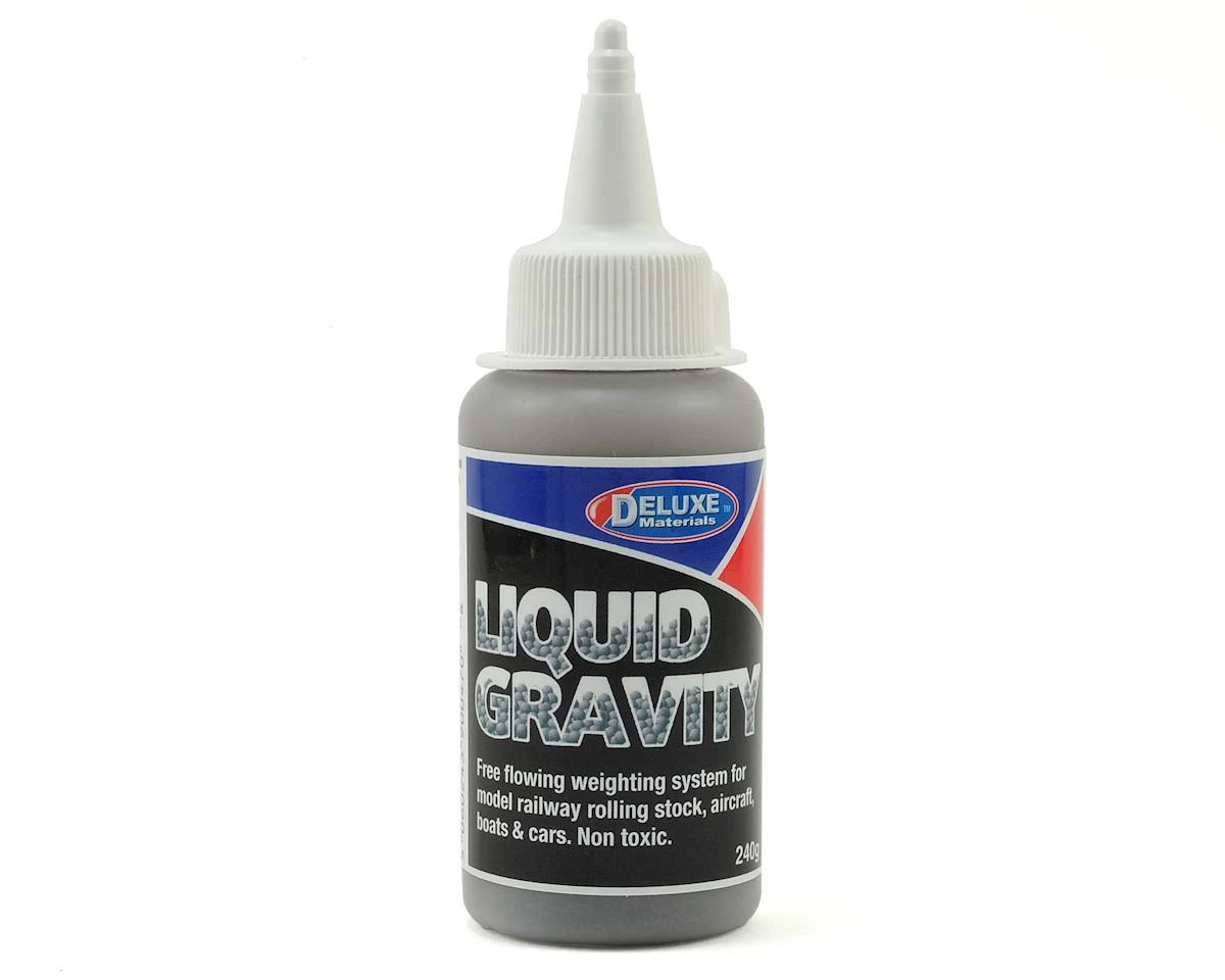 Deluxe Materials Liquid Gravity is a non-toxic, easy flowing, weighting system for scale military models, railway rolling stock, model planes, boats, radio control cars, trucks and more.