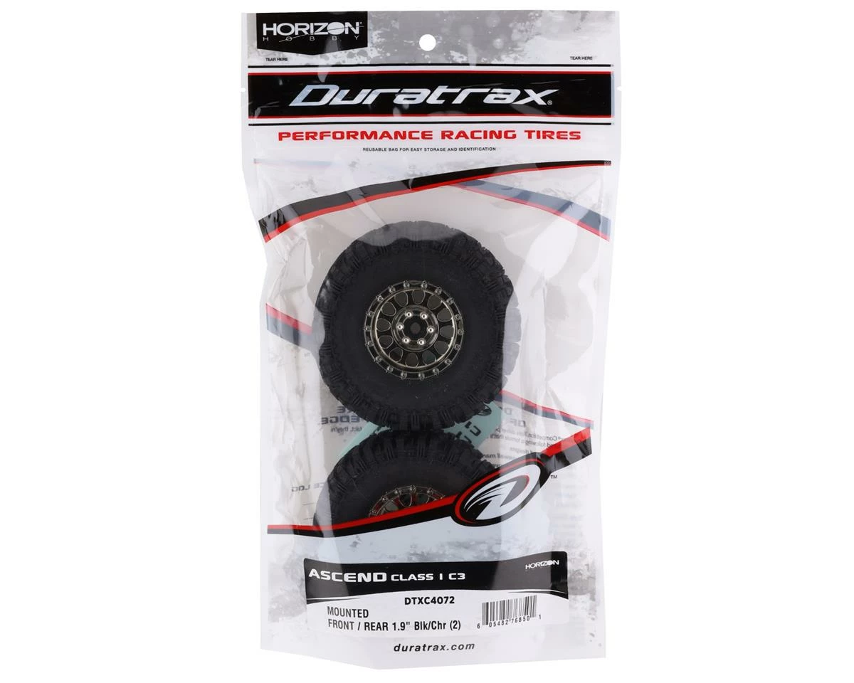 Duratrax Class 1 Ascend CR Pre-Mounted 1.9″ Tires with 12mm Hex. These scale tires feature a 4.19″ outer diameter for the perfect scale look when mounted on 1.9″ wheels. Made from the C3 compound with an aggressive tread that is great for loose dirt or muddy surfaces. Foam inserts are included and installed for the perfect fit and finish. Package includes two pre-mounted tires.
