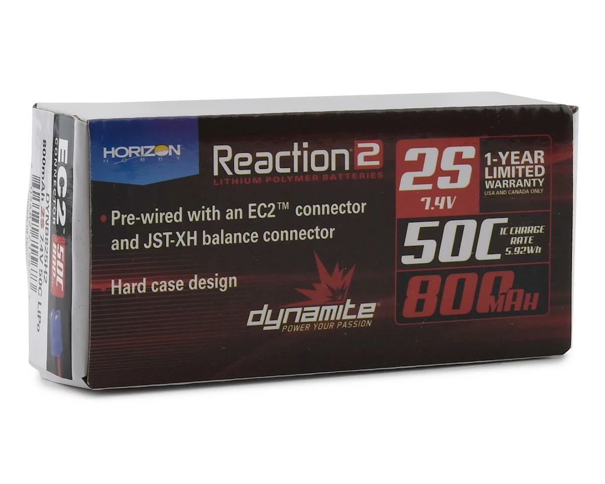 Dynamite Reaction 2S 50C Hard Case LiPo Battery w/EC2 Connector (7.4V/800mAh)