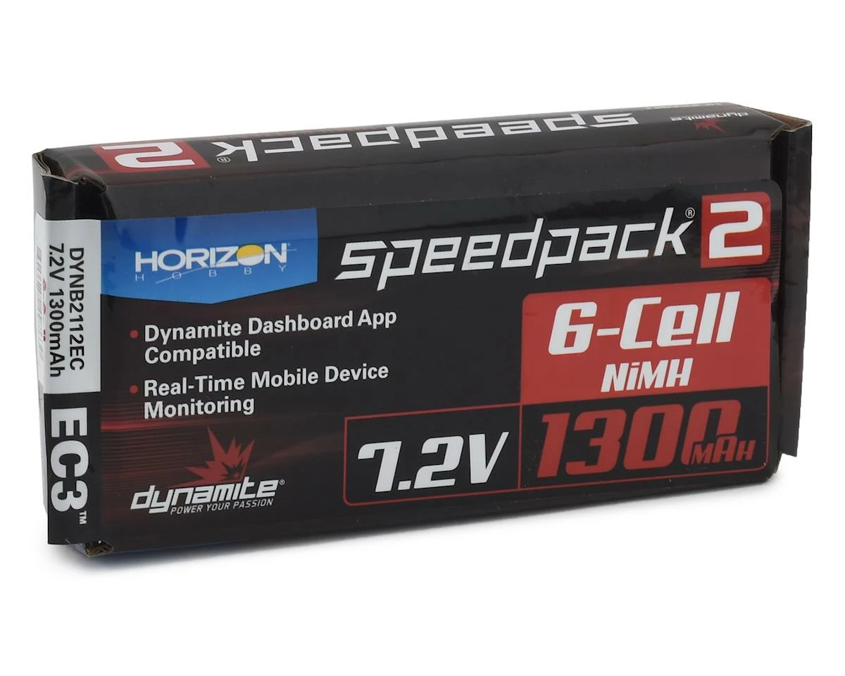 Dynamite Speedpack2 6 Cell NiMH 2/3A Flat Battery Pack with EC3 Connector. Dynamite Speedpack 2 sport packs are an affordable option for RC hobbyists. Additionally, Speedpack 2 batteries are fully compatible with the Dynamite Dashboard app. The Dynamite Dashboard app seamlessly integrates the batteries with the Dynamite PassportSeries of chargers and brings real-time monitoring to your mobile device.