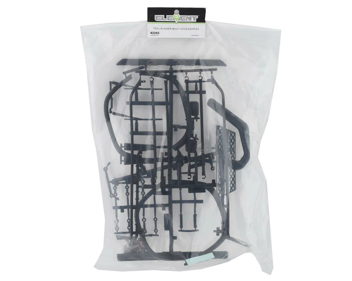 Element Trailrunner Body Accessories. This is the complete accessory pack for the Element Trailrunner. Package includes roof rack, fender flares, grille, door handles, windshield wipers, rear view mirrors, door pillars, snorkel and mounting hardware.