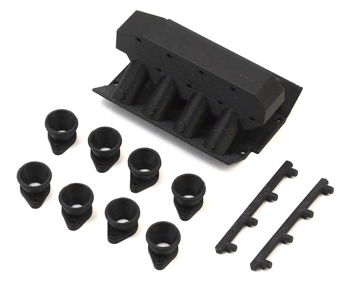 The Exclusive RC RC4WD V8 Hurricane Manifold gives you more custom build options for your RC4WD V8! This intake is a true builders accessory, with included intake stacks and fuel runners. All the detailing is left up to you, allowing you to add a personal touch that cannot be duplicated. When finished and installed, this will give your RC4WD V8 a custom look that cannot be matched by the stock RC4WD accessories.