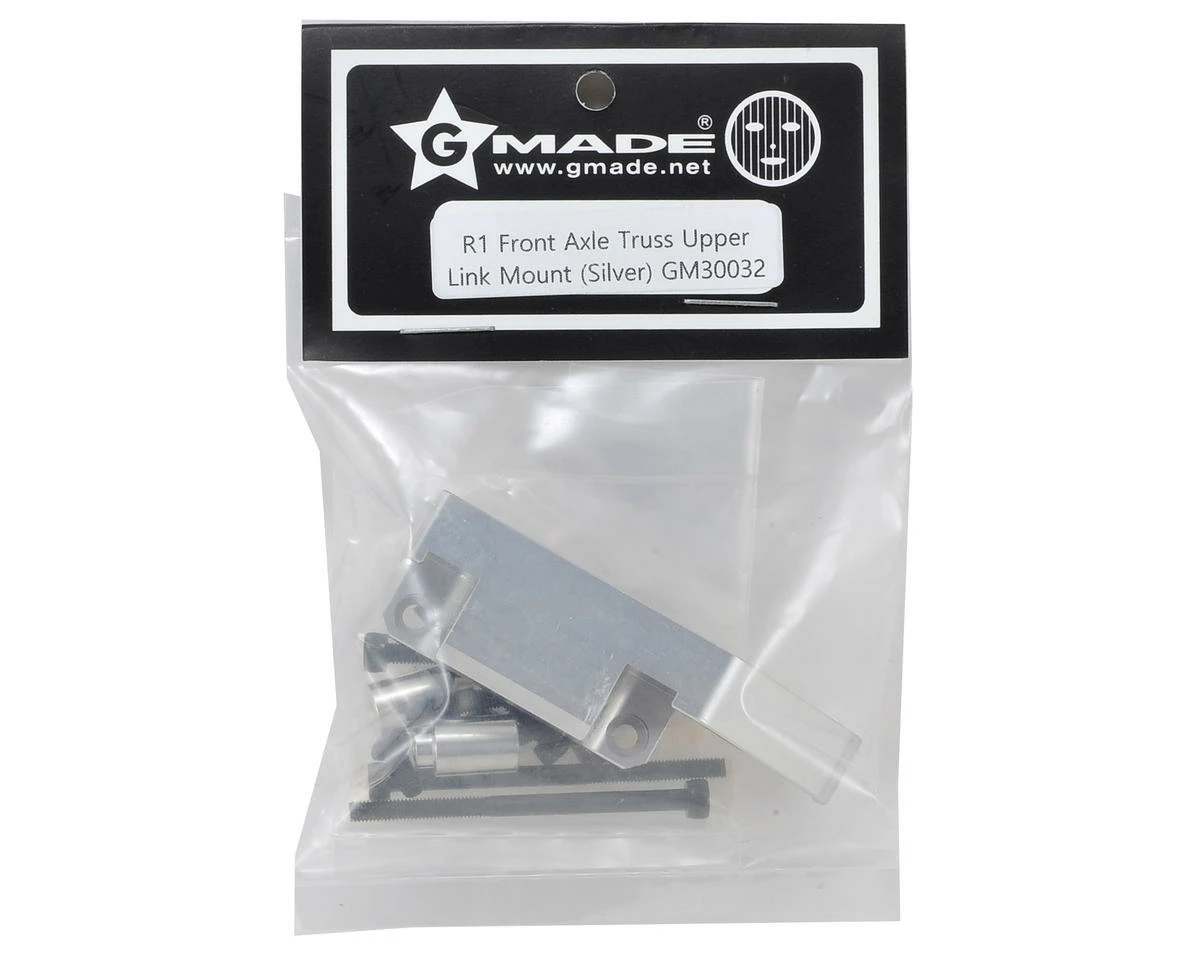 Gmade R1 Aluminum Front Axle Truss Upper Link Mount. This optional precision machined front axle truss link mount adds strength to the axle housing and provides a solid mounting point for the upper suspension links. This is a must have upgrade for any R1 rig.