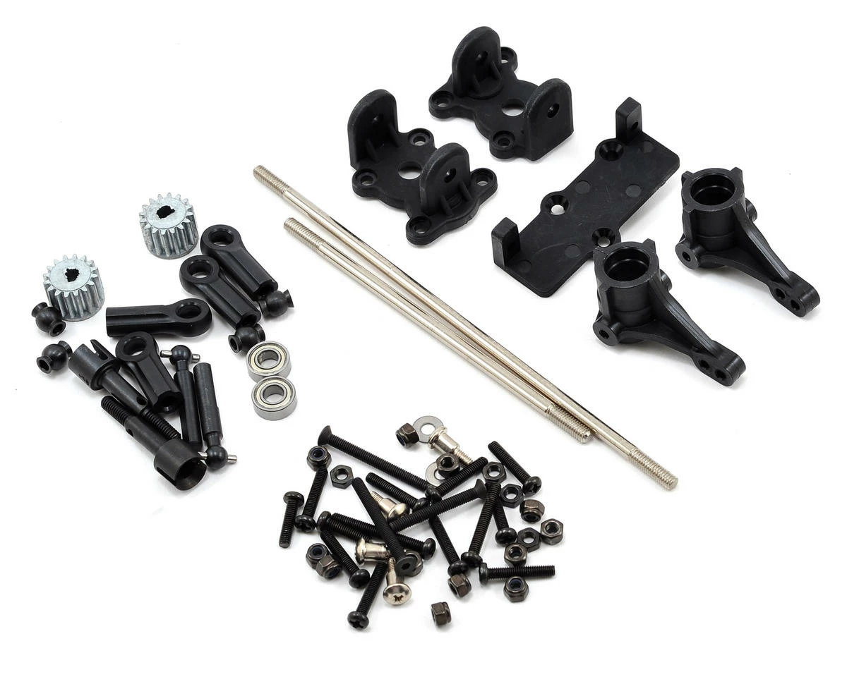 - Includes all the components needed for 4 wheel steering, but does not include a servo or servo horn.
