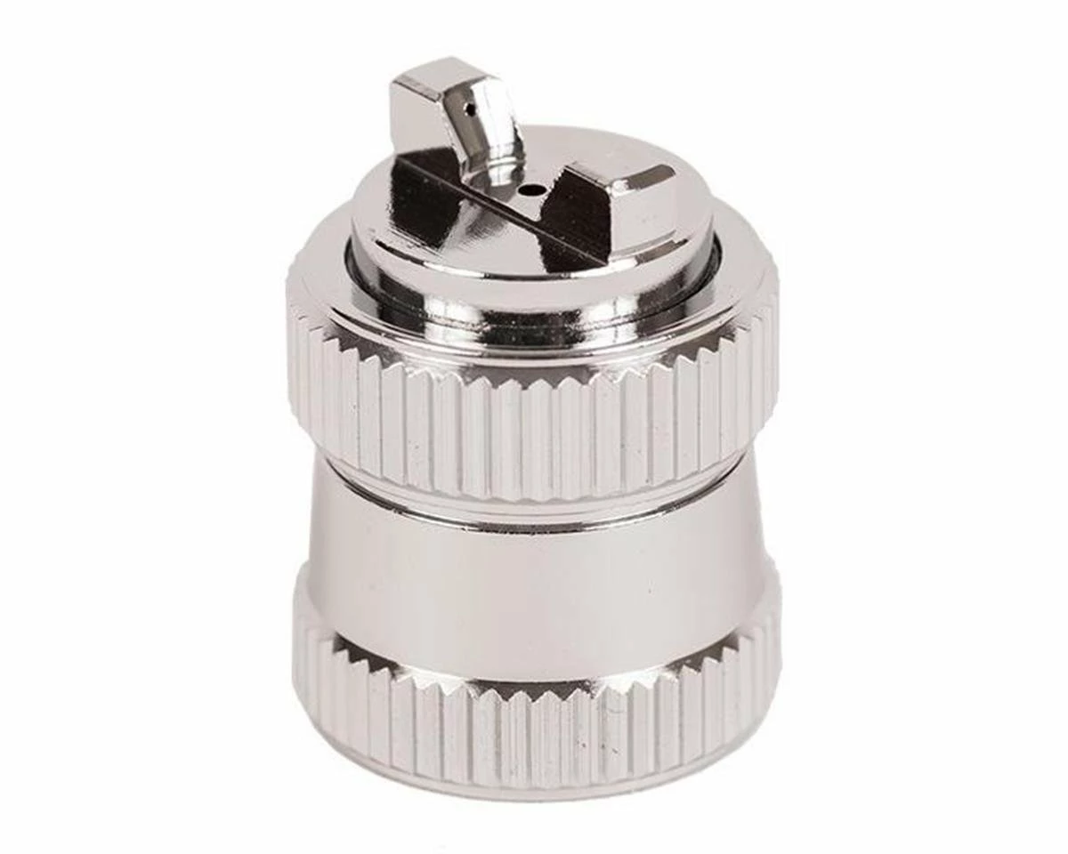 Inspired by full sized spray guns, the Grex Fran Spray Cap transforms your airbrush into a “mini spray gun” allowing for more efficient, quicker and even coverage of larger areas. This changes the standard round spray pattern of an airbrush into an elongated fan spray pattern of a spray gun. A very useful and desired trait for laying down even coverage with less passes.
