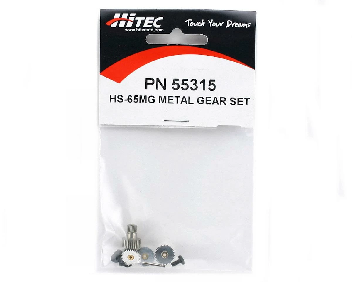 This is the replacement Metal Gear Set for the Hitec HS-65MG Servo. Metal gears provide strength and shock resistance, and replacing worn gears restores proper performance to your servo.