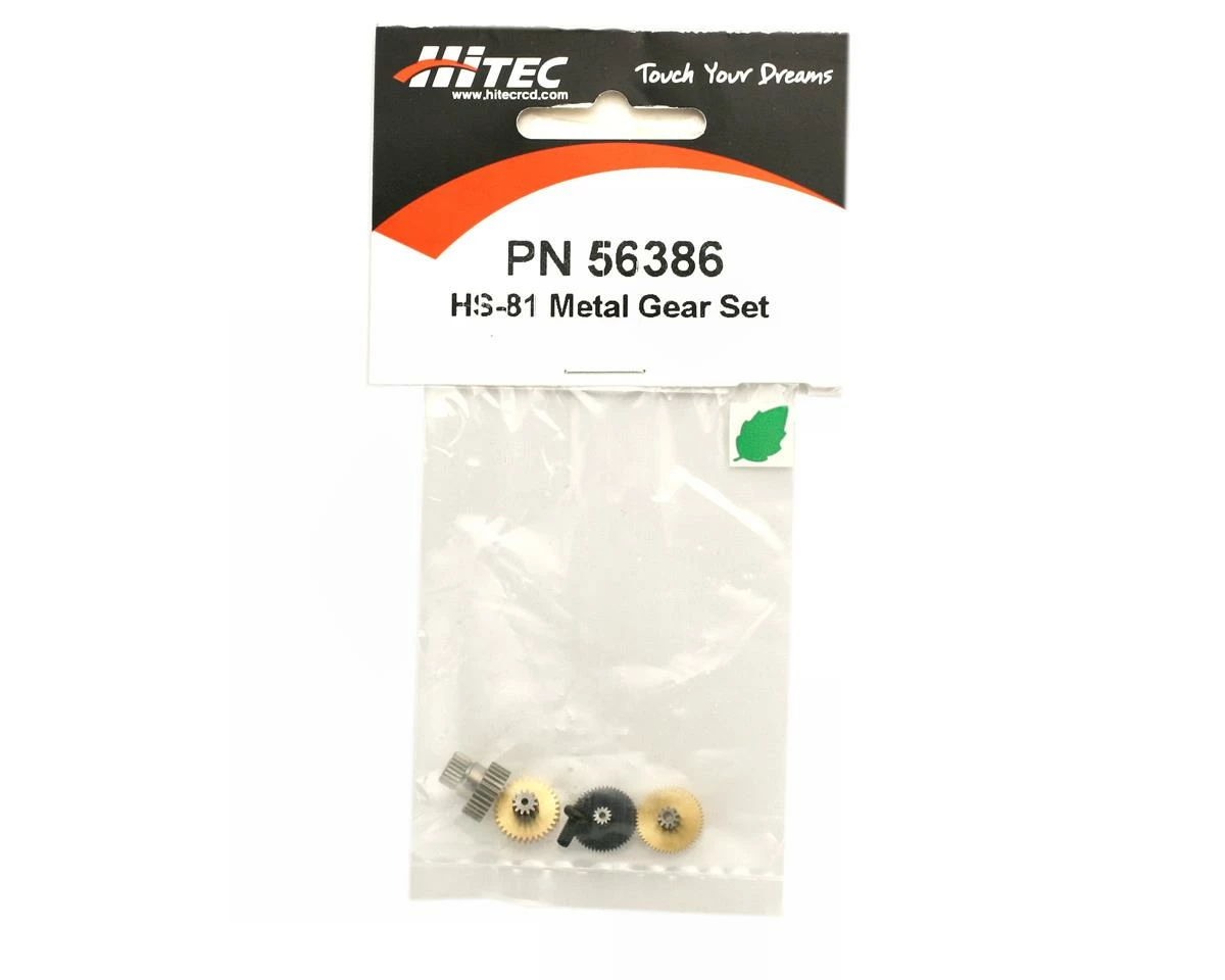 This is the Replacement Metal Gear Set for the Hitech HS-81MG servos. This is a complete gear set. cmc 12/31/01 ir/kh