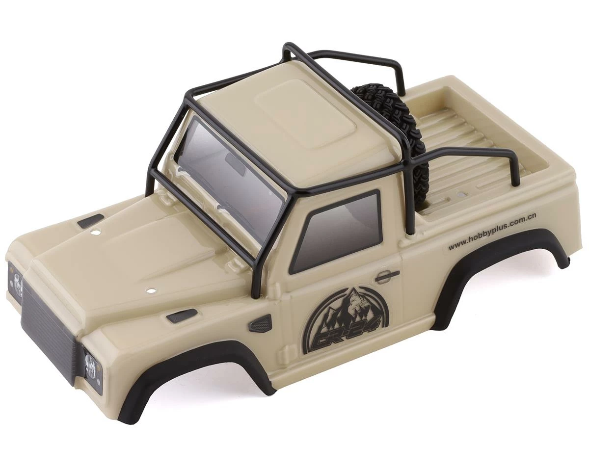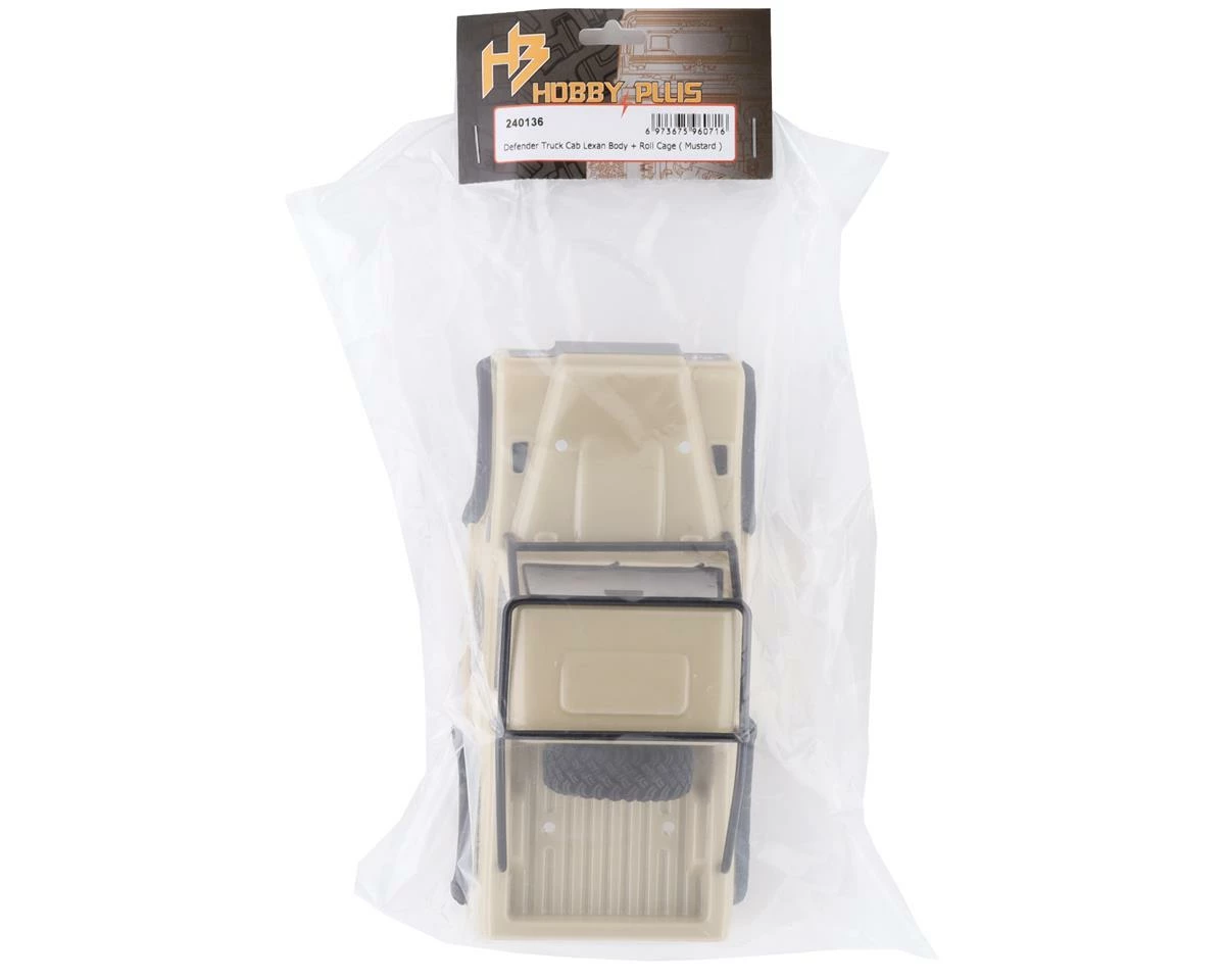 This HobbyPlus CR-24 Defender Lexan Mustard Body with Roll Cage is a replacement body intended for use with the CR-24 Defender Scale Mini Crawlers.