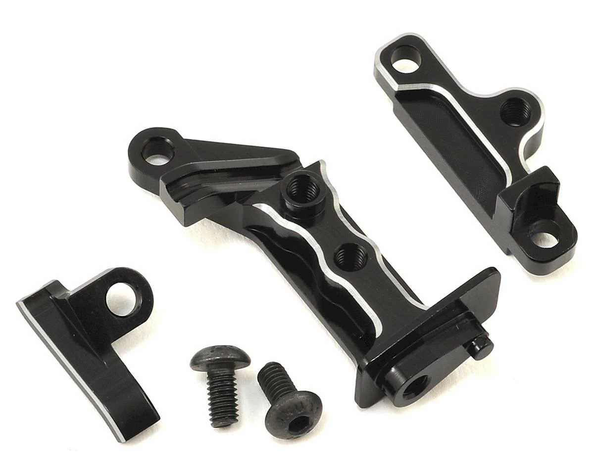 The Hot Racing Axial SCX10 II Aluminum Front/Rear Battery Box Mount is a CNC machined mount system that is a direct replacement for the stock Axial AXI31386 parts. These are must have additions when you want a stronger and more rigid servo winch mount assembly. Plus, the aluminum servo winch line guides help to provide better support and a smoother transition.