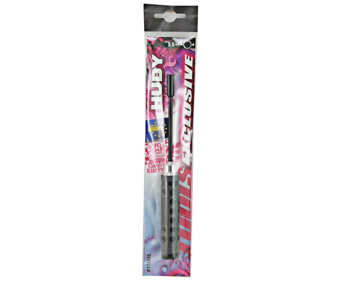 This is the Hudy Limited Edition 5.5mm Socket Driver. Featuring a super-lightweight CNC-machined Swiss 7075 T6 aluminum handle with a diamond pattern surface for unsurpassed grip. The handle includes a black plastic cap press fit into the handle end. Optional color-coded plastic caps (violet, red, blue) are available to customize the tools to your specifications.