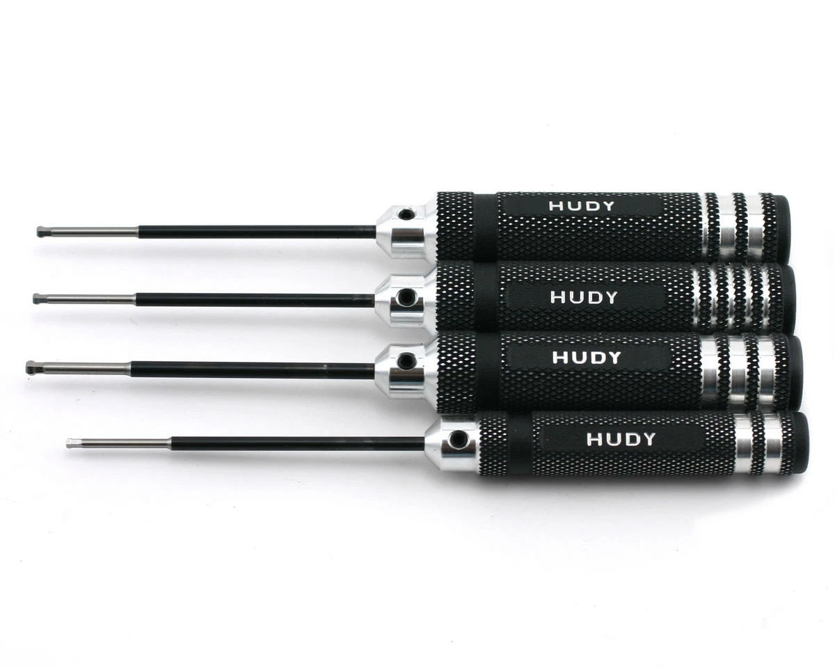 This is a set of Hudy Professional Ball Allen drivers with four sizes. Ultra-lightweight, ultra-durable ball Allen wrenches feature superb fit and finish. Hardened tips, made from world-renown Hudy Spring Steel, are precision designed for excellent fit, long life, and unbelievable torque.