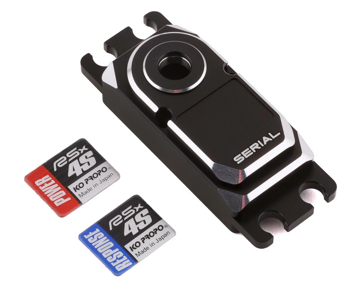 KO Propo RSX4S Aluminum Uppercase. This replacement upper case is intended for the KO Propo RSX4S Response or Power servo. Package includes one uppercase and two decals.