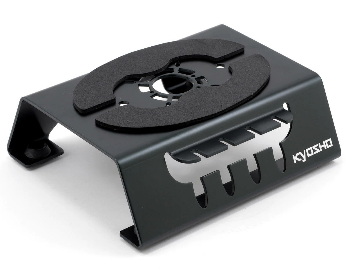 This is the Kyosho “Low Type” Car Maintenance Stand. This stand is suitable for all cars up to 1/8 buggies, and features an integrated shock holder, as well as a screw magnet to hold your screws during maintenance.