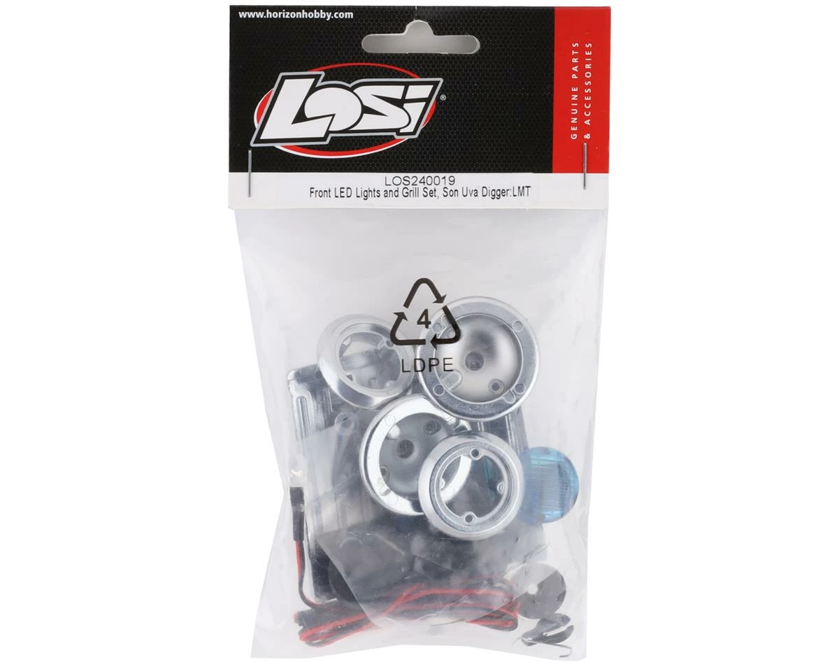 Losi LMT Son Uva Digger LED Light And Grill Set. Package includes Grill, Light Buckets, LED Lights and Mounting Accessories.