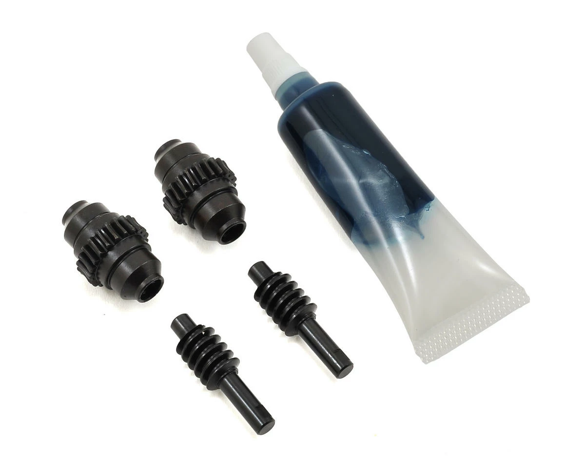 Losi Night Crawler 2.0 HD Worm Gear Set. These are compatible with the Night Crawler and Night Crawler 2.0 models, as well as the Comp Crawler. The worm gear acts as a break when no power is supplied. When power is supplied, axle torque is optimized so the vehicle won’t be thrown off-balance while climbing. The small gear assembly provides extra ground clearance beneath the axle housing. Package includes a worm drive gear set for the front and rear axles, as well as a shim set and a tube of black grease.