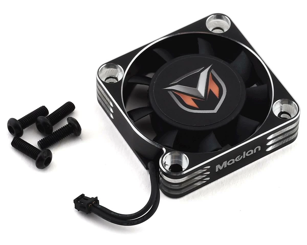 The Maclan 40mm Aluminum Hurricane Series HV ESC Fan is a great option for your Maclan 1/8 ESC. This high quality fan features a black anodized aluminum housing, with silver relief cuts that will add a custom touch to your electronics. The fan is pre-wired with a Maclan compatible connector, making it plug and play. Package includes fan and mounting hardware.