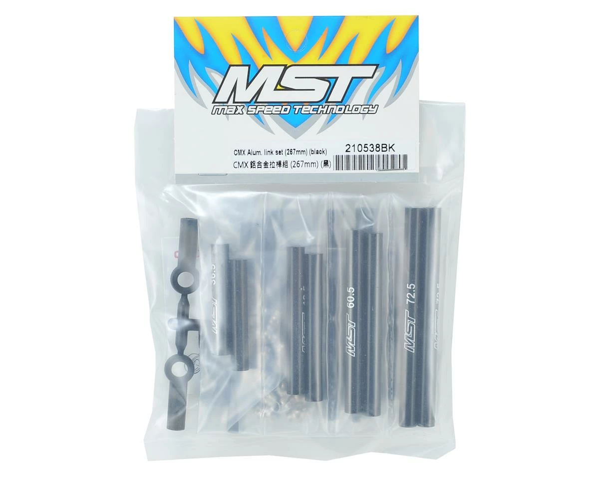 The MST Aluminum 267mm Link Set is a must have upgrade for the CMX and CFX trucks. This kit is specifically for the 267mm wheelbase Toyota FJ models. Not only does this kit upgrade the stock plastic links to aluminum, it also includes steel pivot balls that help to reduce slop in the link assemblies. Package includes the links, rod ends, set screws and pivot balls needed to upgrade the upper and lower links on one truck.