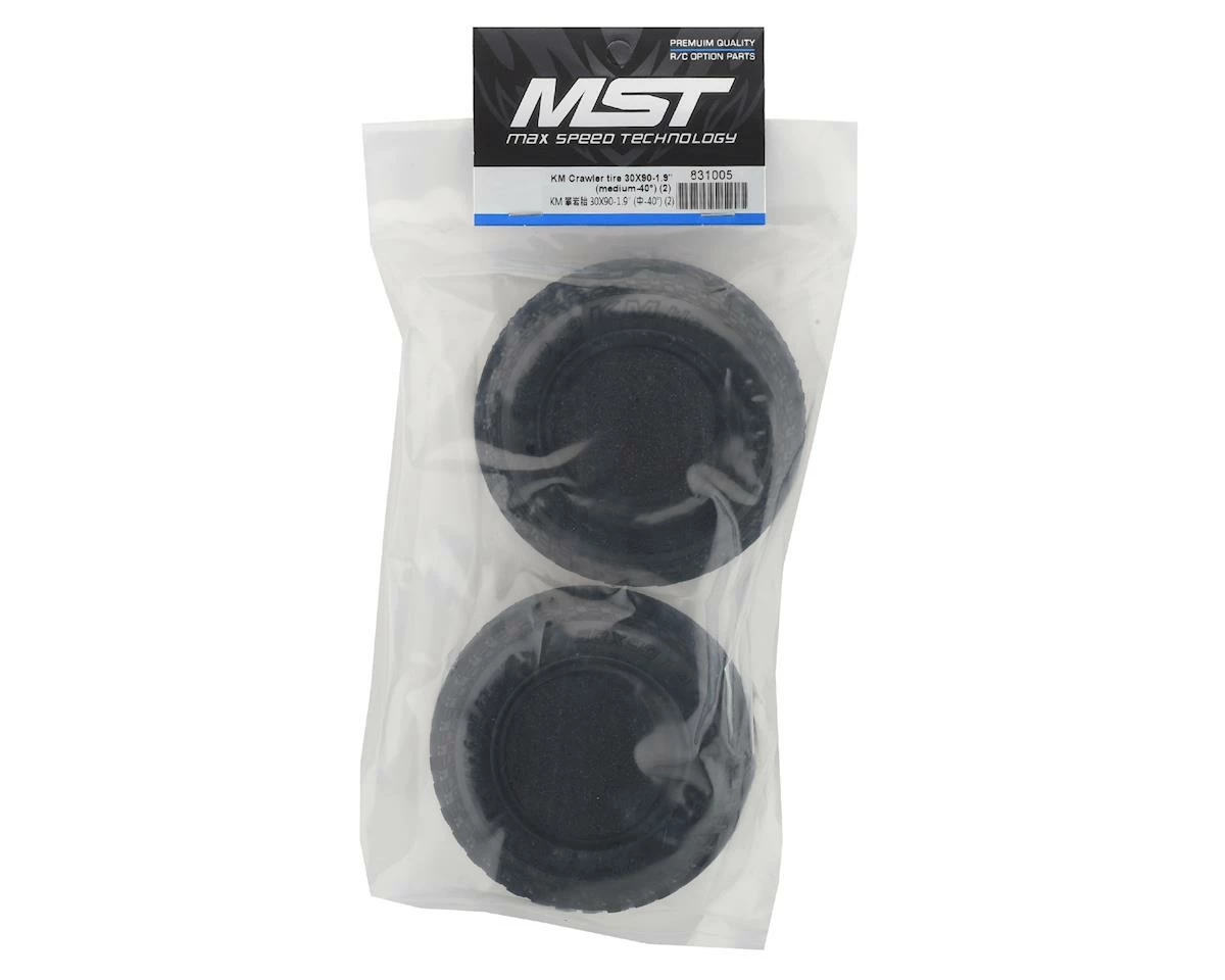 The MST KM 1.9″ Crawler Tire measures 30mm wide and 90mm tall, and is a viable option for 1.9 class 1 trucks, as well as builders looking for a tire with a smaller 3.5″ outer diameter for scale builds. The KM is available in medium and soft compounds, medium being the stock replacement included with CMX and CFX models and soft being an option. Package includes two tires and foam inserts.