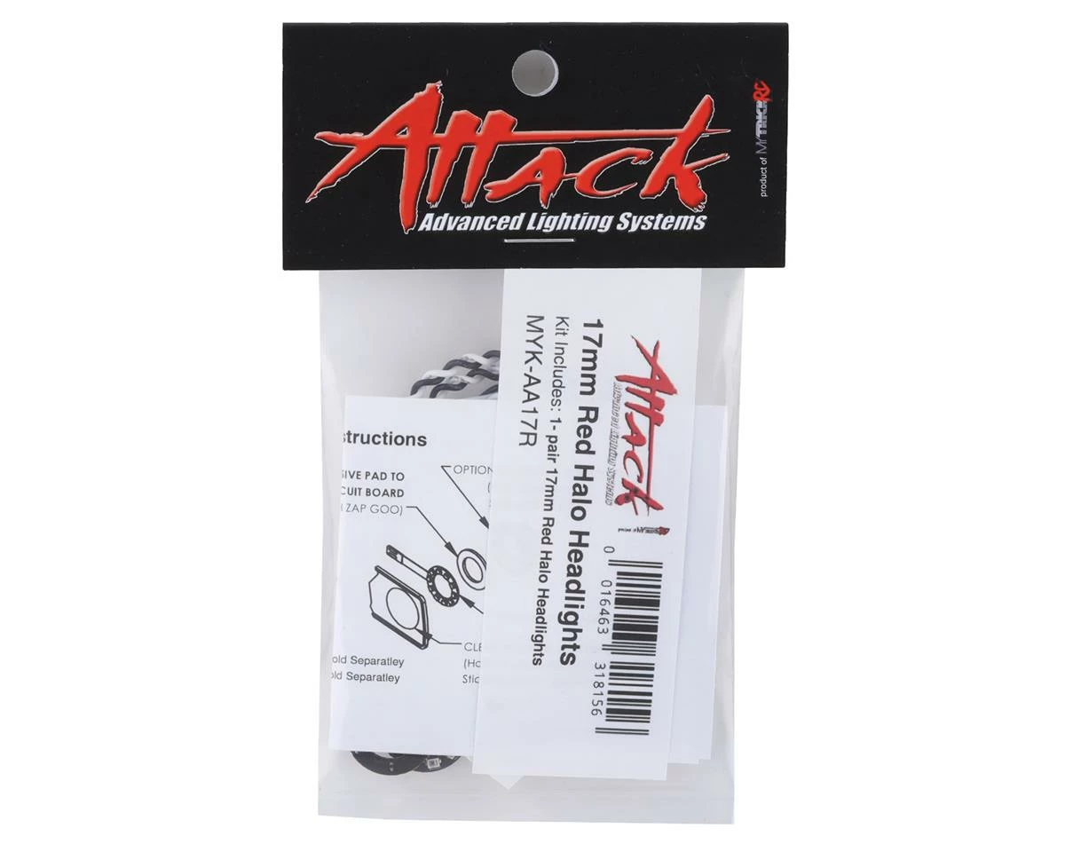 MyTrickRC Attack 17mm Red Halo Headlights, are high brightness headlights for your 1/10th scale vehicle. The super bright LEDs on the Attack 17mm Halo Headlights are carefully chosen for optimum brightness, performance, and durability. The smartly designed Halo Headlights can be used with any MyTrickRC Controller, however, to get maximum brightness, power them from a DG-1 Dragon Controller, or one of the Light Bar Power Regulators. When powering off a DG-1 Dragon, plug them into the black ports, just like a light bar, then you will have 3-Level brightness control. This is ideal for taking pictures, and when crawling, crank them up to FULL BRIGHTNESS for an awesome explosion of light on the trail.