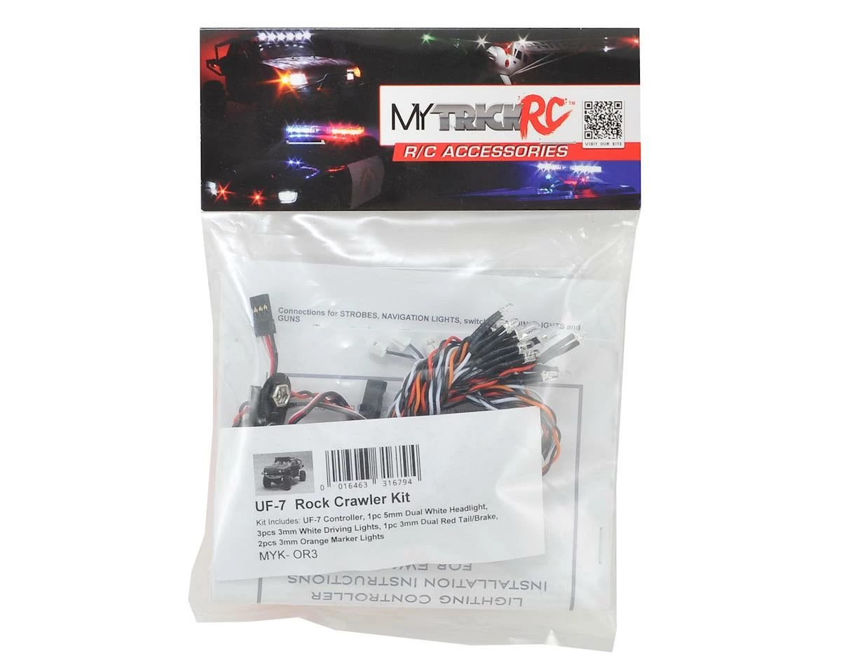 The UF-7 Controller is a clever plug-and-play system that features 11 lighting modes and is perfect for any Off road Truck, Emergency Vehicle, Rock Crawler, Car, Airplane, Boat, Scale Prop Lighting or any other hobby project. It is powered from either the vehicle’s receiver or an independent 9V battery.