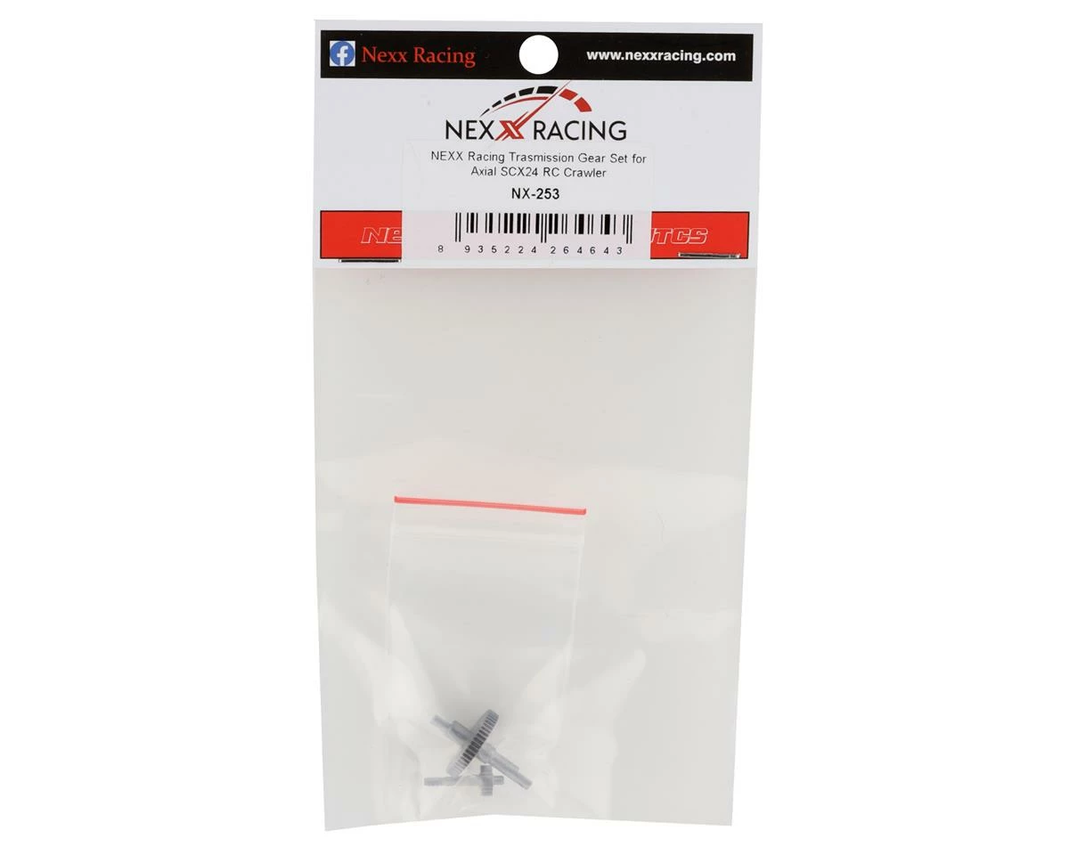 NEXX Racing Axial SCX24 Transmission Gear Set. This optional gear set is intended to increase the durability of the Axial SCX24 transmission. Made from high quality steel, this set features a 51T lower gear and 19T top shaft. Package includes two transmission gears.