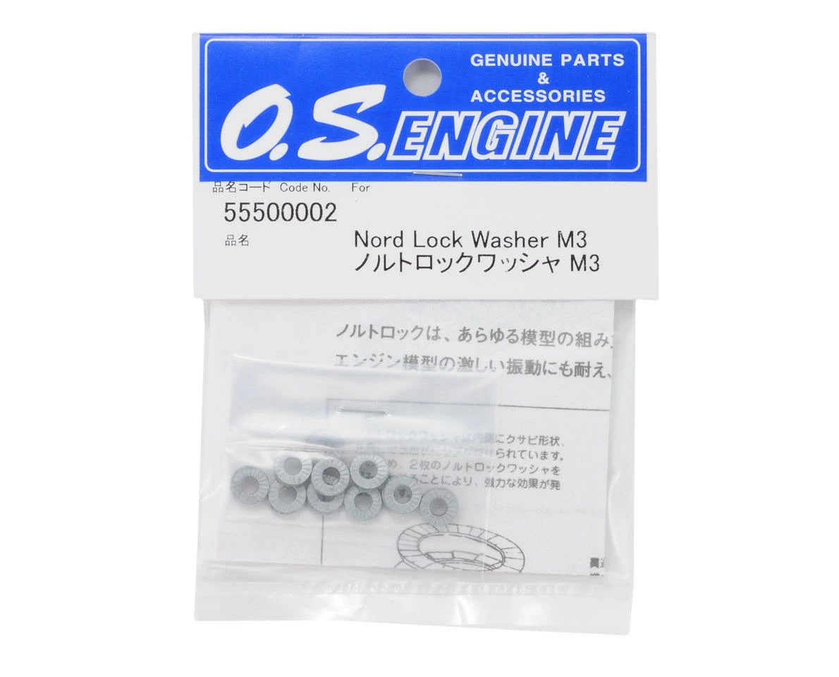 This a pack of twenty O.S. Engines 3mm Lock Washers which will build ten complete lock washers. These washers are used to mount engines to the engine mounts, but can be used anywhere a lock washer is needed.