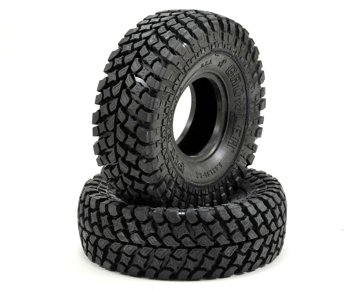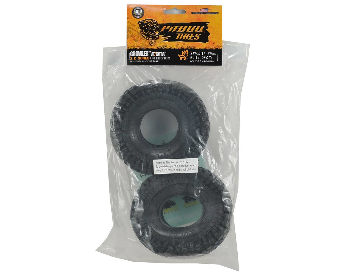Pit Bull 2.2 Growler AT/Extra Scale Crawler Tires are the tire of choice for U4 Competition! These are the ultimate in fast, high grip rubber. PAP Kompound is Super Sticky, but unlike other sticky tires PAP Kompound is also super durable. Growler AT/Extra Scale R/C 2.2’s are miniaturized versions of the Winning Pit Bull Growler LT 1:1 tires. The durability also makes these tires an excellent choice for bashing. The multi-varied directional tread design allows for a directional look with non-directional functionality and was designed to increase control while enhancing stability and contact patch. Excellent lateral bite–incredible stickiness and exceptional traction.