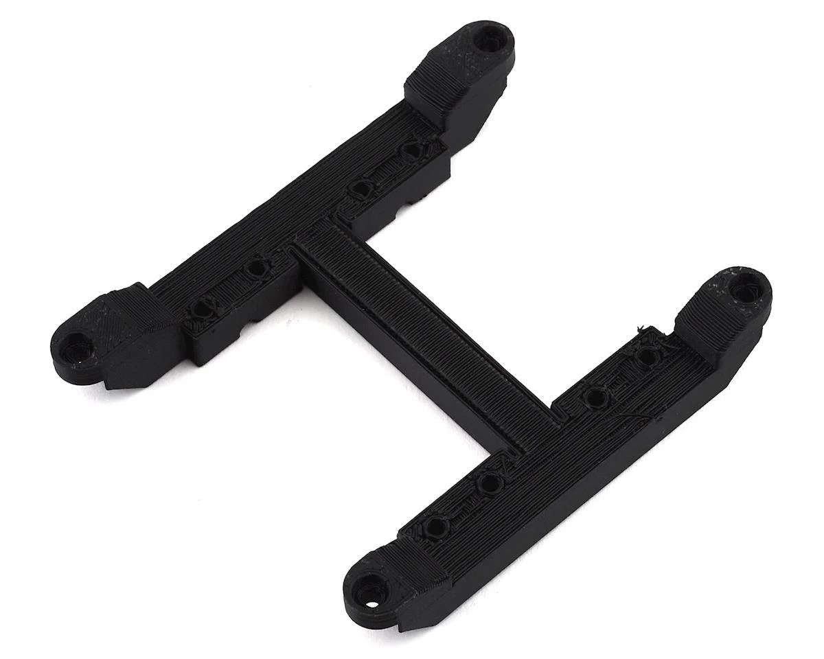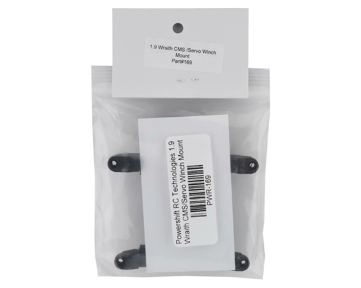 This is an optional Powershift RC Technologies Axial 1.9 Wraith CMS and Servo Winch Mount. This 3D printed carbon nylon accessory ties in to the stock tube frame and replaces the stock servo mount and radio box, with a stronger piece that allows you to add a servo winch with zero modification.